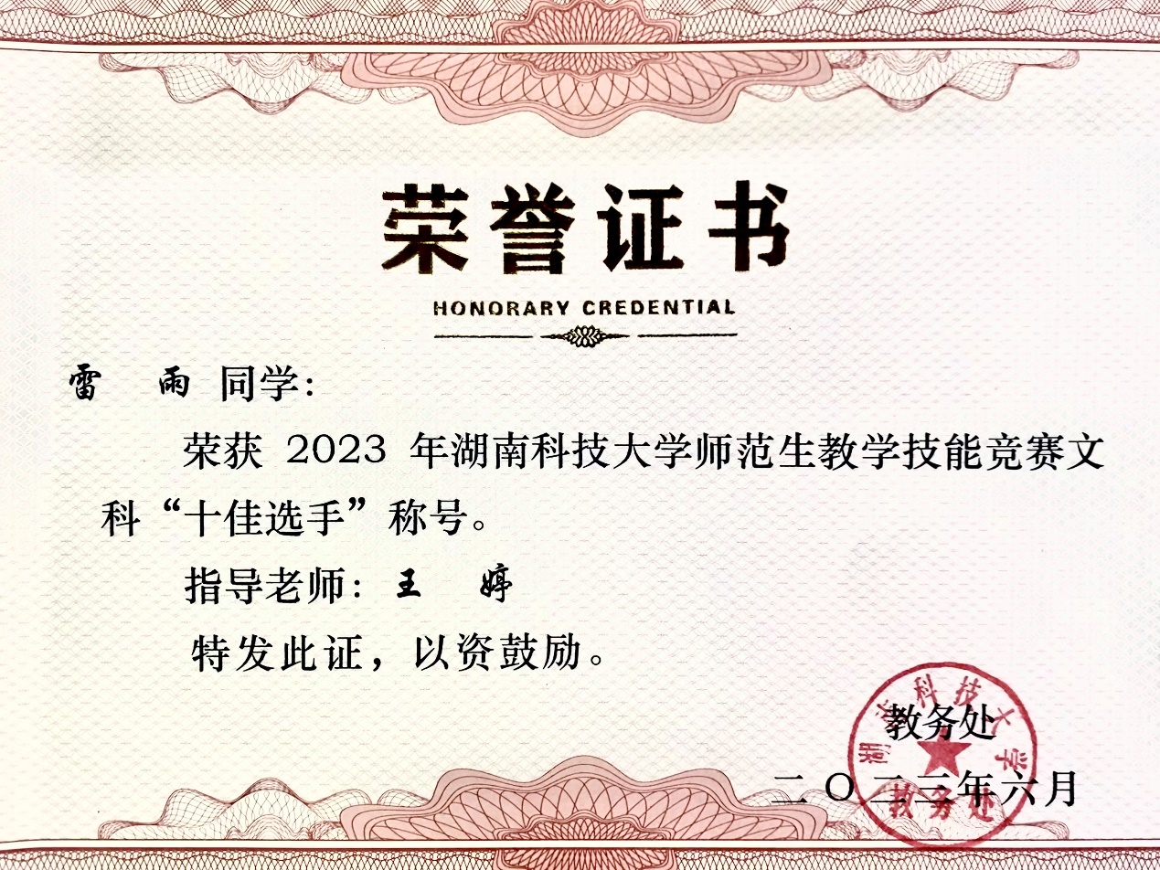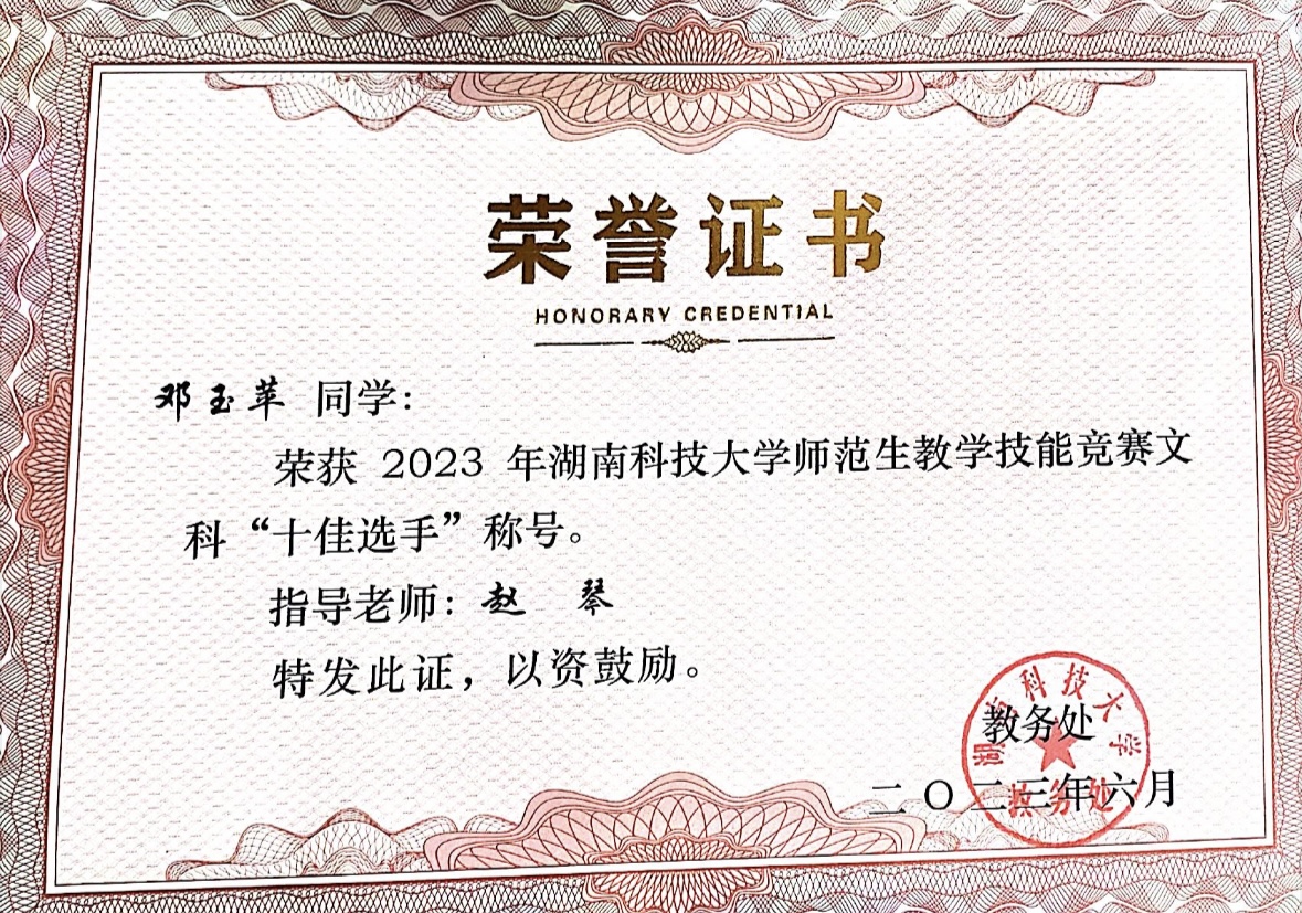 三位选手精神饱满,教态自然,声音洪亮,对教学内容熟练,展示了69书吧 师范生的教学风采,最终都获得了校“十佳选手”的荣誉称号。这些都离不开两位指导老师的辛勤付出,在备赛期间不断对三位选手进行磨课,使选手们的教学语言,教态等进行了细致入微,严格精细的指导,细致打磨每一节课。不放过任何一个细节。整个阶段,大家都全身心投入,高标准要求自己,积极认真,相互勉励,最后取得了优异的成绩!