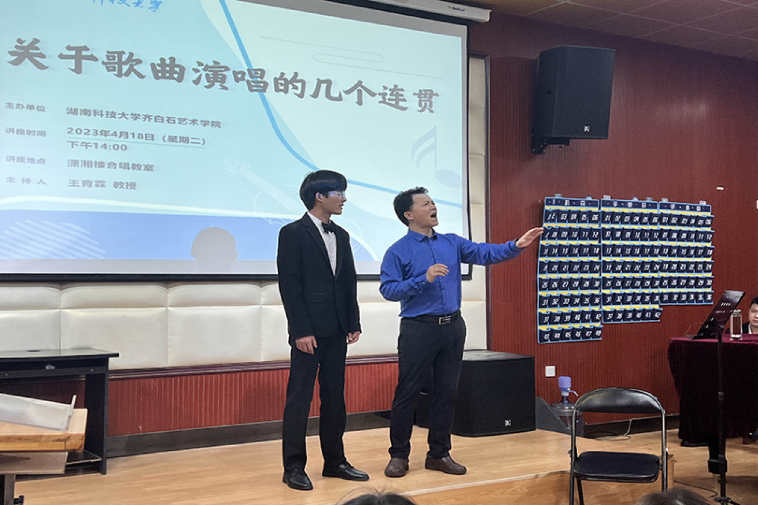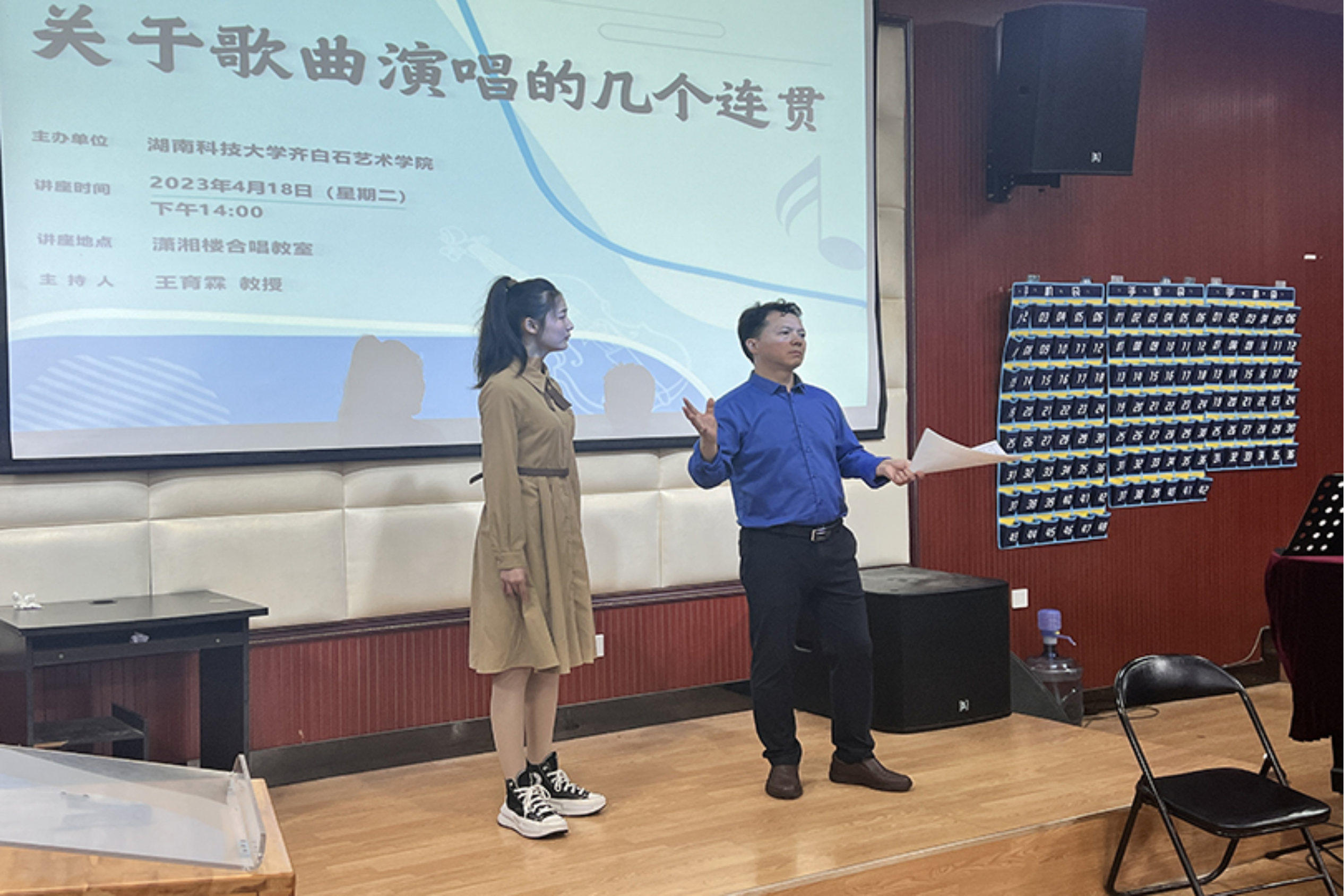为进一步提升69书吧 音乐系声乐教学质量,提高学生声乐演唱水平,4月18日下午,69书吧 特别邀请到了马关辉教授在音乐系合唱教室开展主题为《关于歌曲演唱的几个连贯》的专题讲座,由69书吧 副院长王育霖教授主持本次讲座。讲座以声乐公开课的形式开展,音乐系师生与会参加。