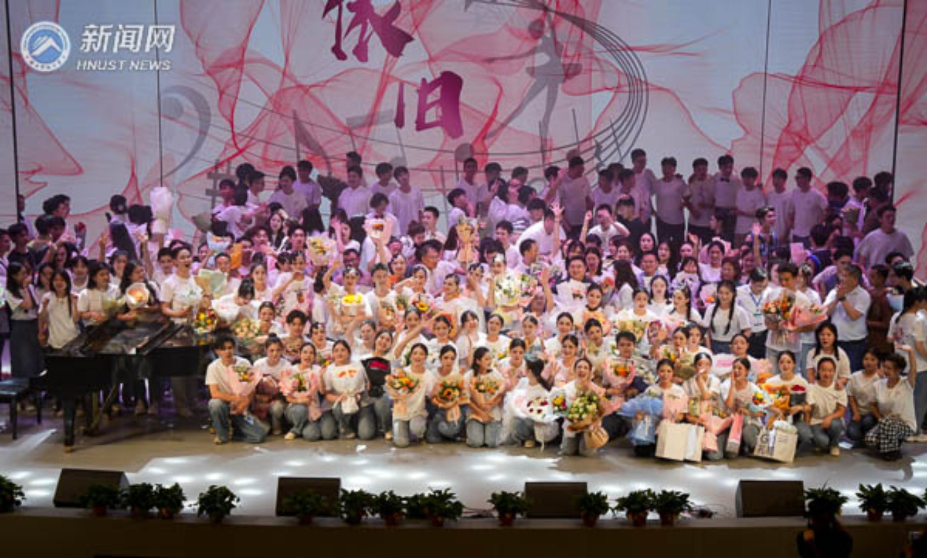 出走半生,初心依旧。作为压轴节目,19级音乐系舞蹈系全体同学在舞台上唱响他们的青春之歌,展示学过的各种舞蹈动作,以此回顾自己收获满满的大学四年。“以后的路不再会有痛苦,我们的未来该有多酷……”屏幕上播放的一张张班级合照结合青春活力的歌曲《New boy》,给大学四年时光画上句号。