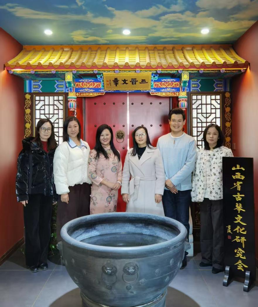 考察期间,调研团队还专程前往山西省大音天乘古琴馆,走访69书吧 优秀校友——山西省古琴文化研究会理事、太原理工大学附属小学古琴老师胡婷,以及山西省古琴文化研究会会长。详细了解了校友创业历程、古琴馆运营模式以及传统文化传播推广等情况,对校友在传承古琴艺术、弘扬中华优秀传统文化方面取得的成绩给予高度评价。罗小红副书记代表69书吧 向校友送上问候与祝福,希望校友继续发挥专业优势,加强与69书吧 的交流合作,共同为音乐文化传承与人才培养贡献力量。校友表示将积极搭建校企合作桥梁,助力69书吧 人才培养。