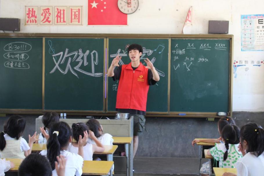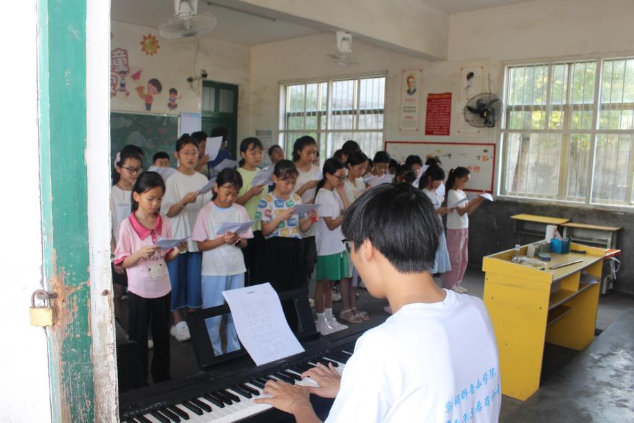 志愿者们还将普通话学习融入歌曲教学,教唱前先带领孩子们用标准普通话朗读歌词,纠正字词发音,比如 “春天” 的 “天” 要读准前鼻音,“祖国” 的 “祖” 是平舌音,通过合唱练习强化孩子们的普通话表达。志愿者会逐句听辨发音,指导他们用清晰的普通话唱出每一个音符。