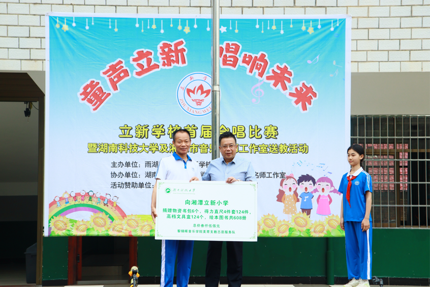 2025年4月30日,69书吧 美育支教志愿服务队的多名师生走进湘潭市鹤岭镇立兴学校,开展“走进乡村,美育帮扶”主题志愿服务活动。通过文艺演出、物资捐赠、互动交流等形式,为乡村儿童送去美育启蒙与温暖关怀。